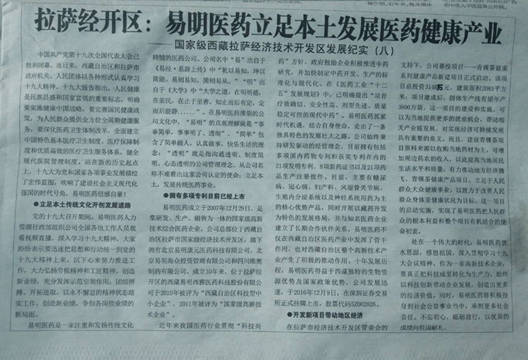 拉薩媒體高度關(guān)注易明醫(yī)藥發(fā)展