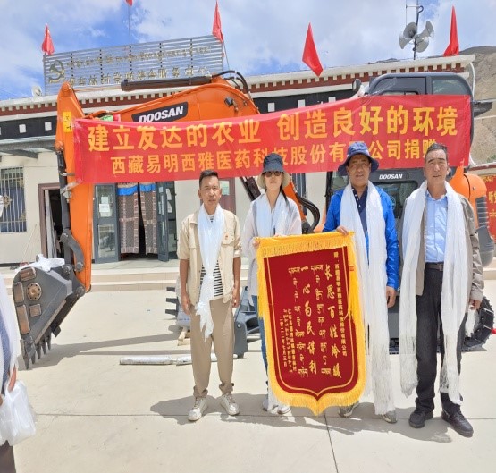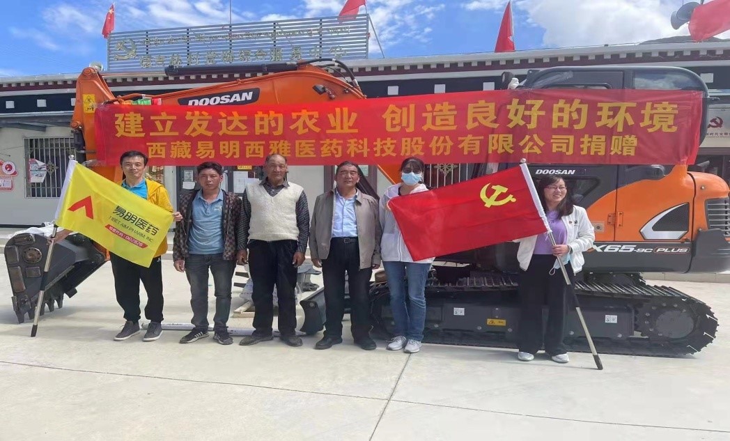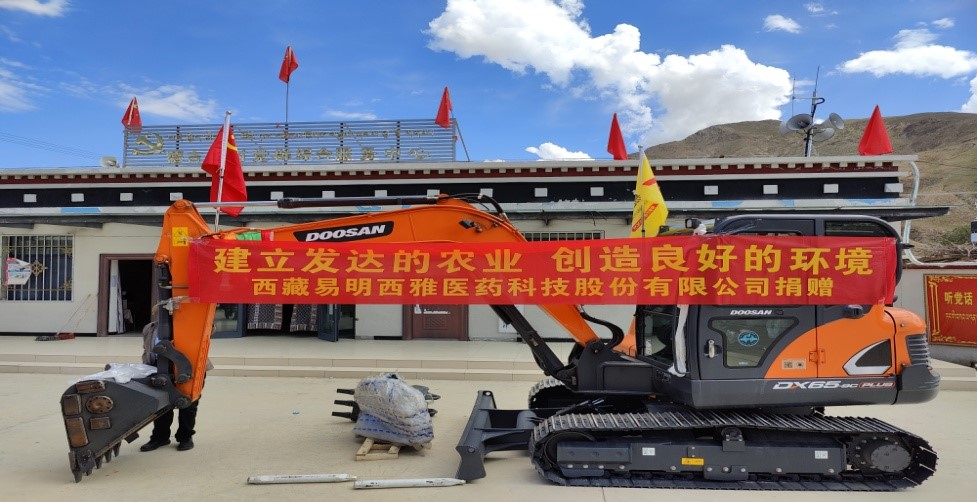 2022年7月7日,西藏易明西雅醫(yī)藥科技股份有限公司(以下簡(jiǎn)稱:易明醫(yī)藥)在仁布縣德吉林村黨群綜合服務(wù)中心向該村捐贈(zèng)一臺(tái)價(jià)值20萬(wàn)元的挖掘機(jī),用于助推當(dāng)?shù)卮蛟臁稗r(nóng)業(yè)發(fā)達(dá)、環(huán)境優(yōu)美”示范村的建設(shè)。易明醫(yī)藥作為一家西藏本土上市的醫(yī)藥公司,一直以來立志于行業(yè)發(fā)展、熱心公益事業(yè),履行企業(yè)社會(huì)責(zé)任,多措并舉助力鄉(xiāng)村振興。
